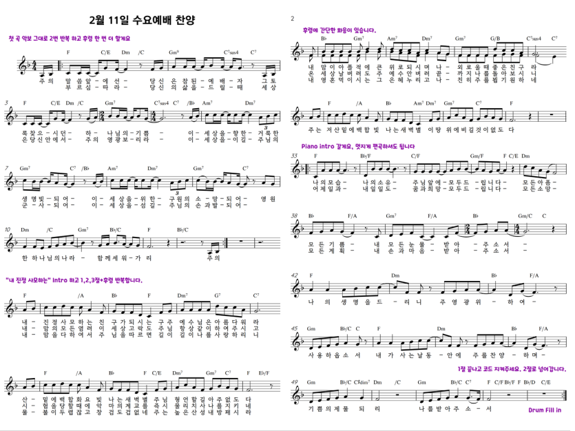 4페이지는 세션팀에서 보는 악보입니다.
